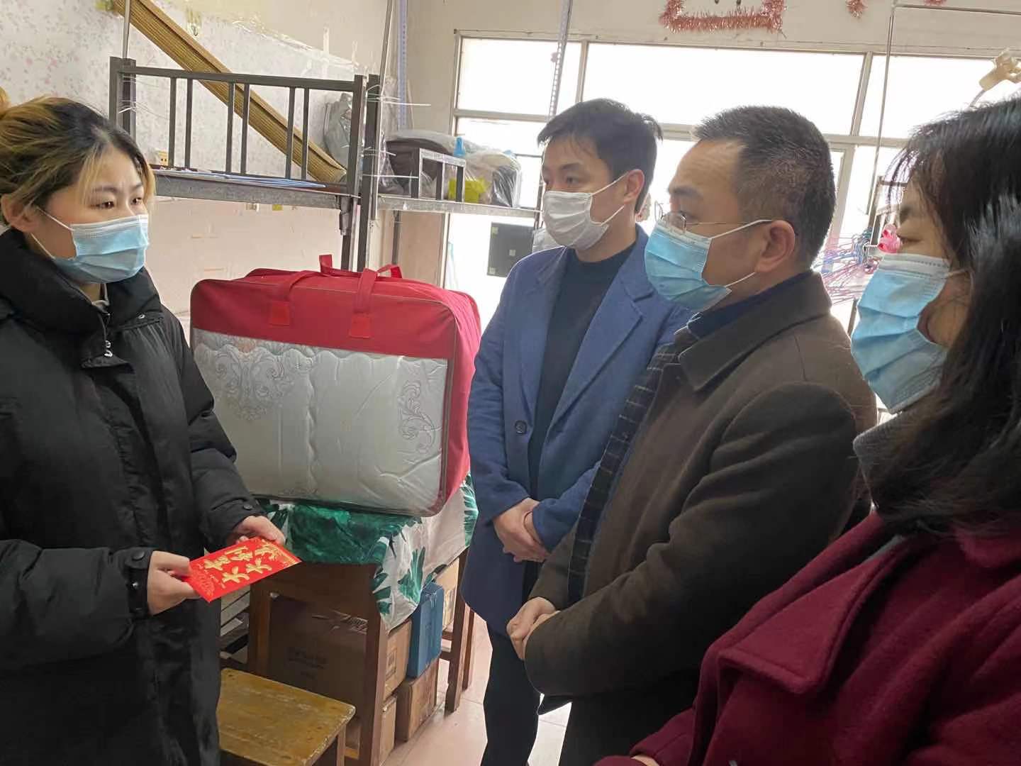 本站讯(财会金融学院 邹涛)为表达对困难学生的关爱,帮助困难家庭学生健康成长、快乐学习、乐观生活。1月16日,副校长张印华、财会金融学院领导班子成员以及相关班主任走进宿舍慰问本院两名困难学生,送上慰问金、棉被和诚挚的祝福,让贫困学生在寒冬中感受来自学校的深切关爱和春天般的温暖。