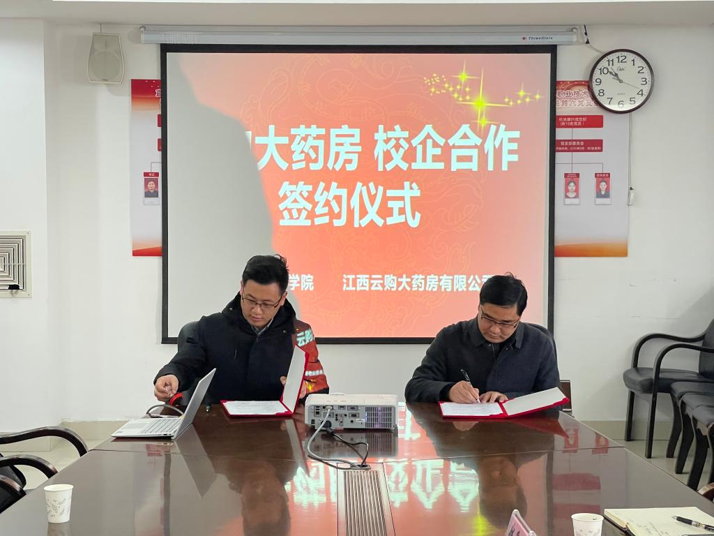 本站讯(创新创业学院 纪仪芳)为积极响应国家创新驱动发展战略,更好的培养学生的创新精神、创业意识和创新创业能力,在学校领导的指导和支持下,创新创业学院与江西云购大药房有限公司决定在校内设立生产性实训基地——江西云购大药房有限公司(职院店)。双方于2021年1月28日上午在科技综合楼413举行项目签约仪式。此次签约仪式由创新创业学院院长钱爱文主持,江西云购大药房有限公司总经理崔希明、创新创业学院党支部书记杨和峰、医学院院长刘敏以及项目负责人陈丽芳老师出席此次签约仪式。