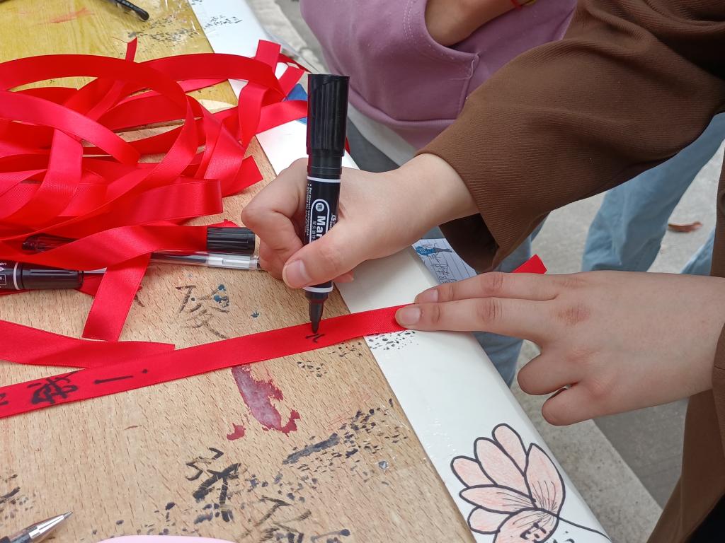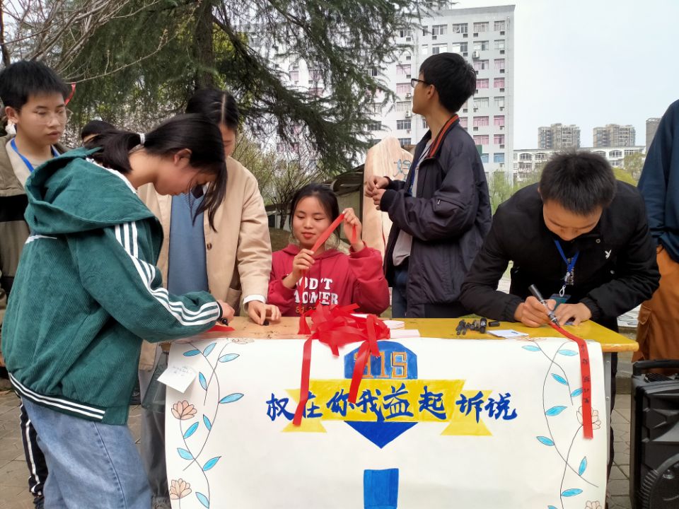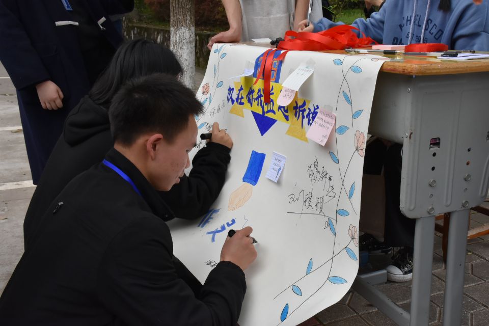 精美的宣传海报和悠扬轻快的音乐吸引着过往的同学,工作人员首先向大家介绍了活动目的和流程,并对在场同学提出的权益问题耐心地进行了答疑解惑。维权行动刻不容缓,同学们纷纷拿起笔将自己的维权想法和心愿写在卡片和红丝带上,维权海报上满当的签名无不展现出了同学们维权的意志与决心。一条条写满真实想法的红丝带犹如维权的种子深植在同学们心中,激励大家认真学习维权知识,勇敢维权,增强识假、辨假能力。