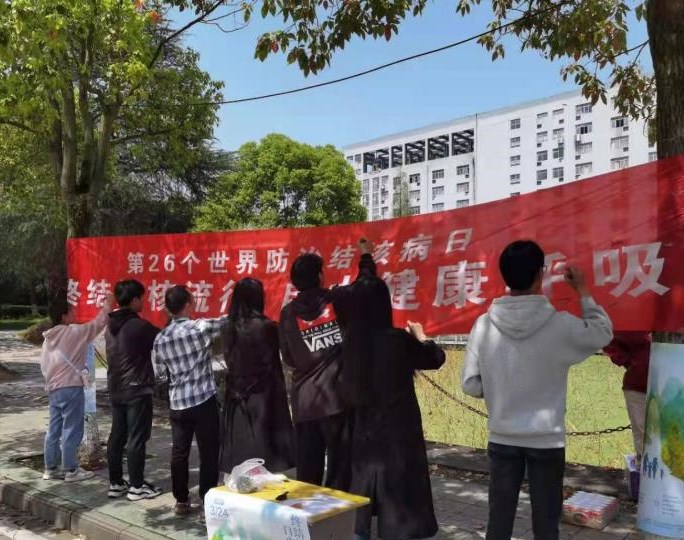 3月24日中午,在校附属医院和校团委的指导下,校红十字会于荷花池旁开展了防治结核病宣传活动。协会成员在现场布置了醒目的结核病宣传展板、横幅,并发放了预防知识宣传手册,积极向来往师生普及结核病防治知识,让大家明白了防治结核病的重要性和紧迫性。在工作人员的热情服务和耐心解答下,活动逐渐接近尾声,同学们纷纷在宣传横幅上留下签名,满满当当的签名充分展现了学子们积极防控结核病的决心。