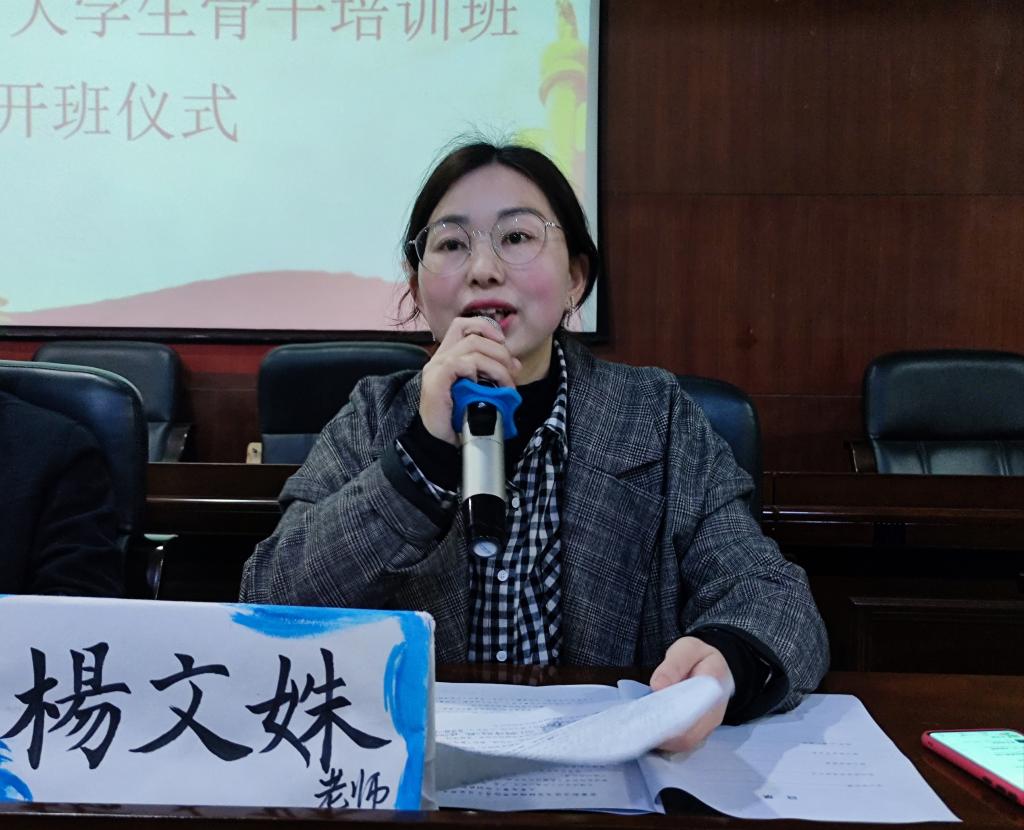 本站讯(师范学院党总支 杨文姝 霍文杰)为提高师范学院大学生骨干、团干部的思想政治素质,培养造就政治信念坚定、有理想信仰的青年马克思主义者,4月12日晚,师范学院在第一教学楼9楼学术报告厅召开2021年“青年马克思主义者培养工程”培训班开班仪式。会议由师范学院团总书记杨文姝主持,师范学院院长雷水龙、党总支书记邹晓英出席会议。