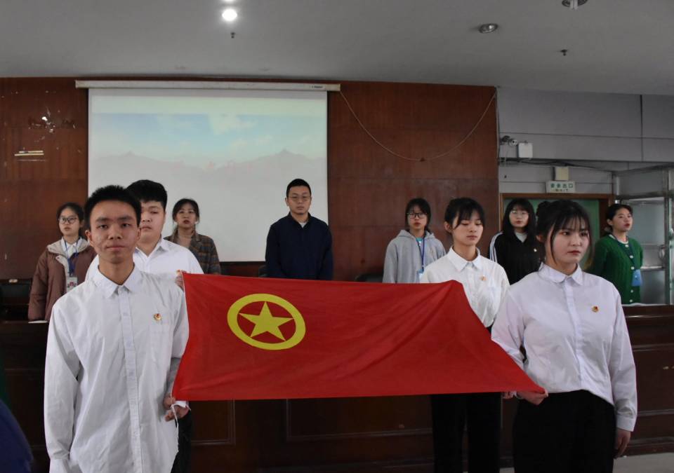 会议在嘹亮且饱含激情的歌声中拉开帷幕。青年旗手出团旗、会旗,全体与会人员齐唱中国共产主义青年团团歌《光荣啊,中国共青团》。奏唱团歌后,由校学生会主席团成员李玉玲宣读实习主席团、各部门实习部长、副部通过名单。