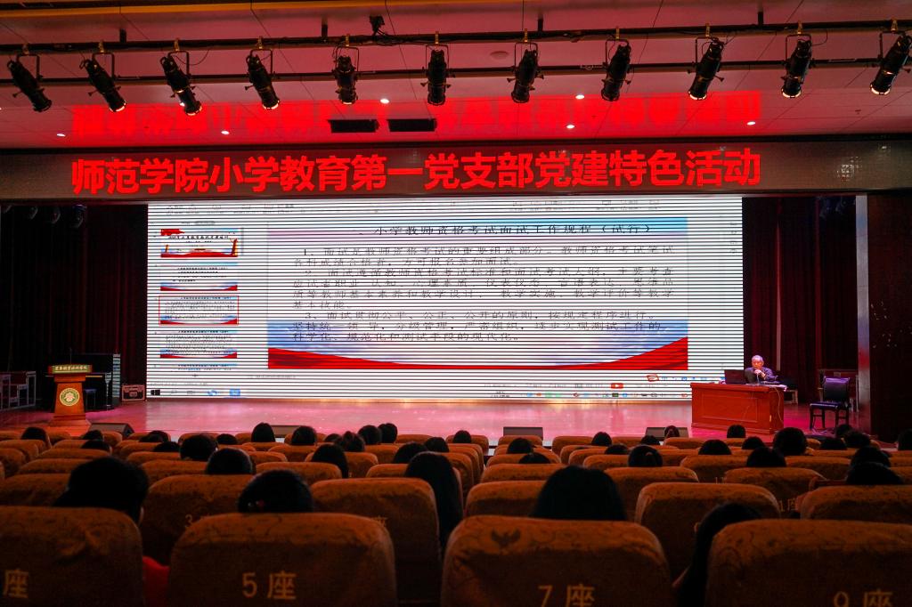 本站讯(师范学院党总支 张婧莉)2021年4月21日晚7点,师范学院党总支党建特色活动——教师资格证面试考前培训会在科技综合楼二楼学术报告厅举行,本次培训会由师范学院小学教育第一党支部书记李彪主讲,现场500多名学生接受了此次培训。