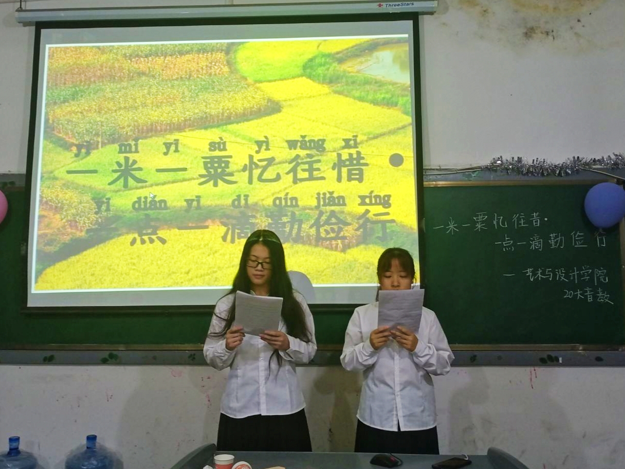 本站讯(艺术与设计学院 学生记者 雷北婷)为传承中华民族勤俭节约的传统美德,推崇厉行节约,反对浪费的社会风气。回忆往昔,回顾党史,发扬艰苦奋斗,勤俭节约的作风。艺术与设计学院于2021年4月20日晚7:30开展“一米一粟忆往昔·一点一滴勤俭行”团日活动。