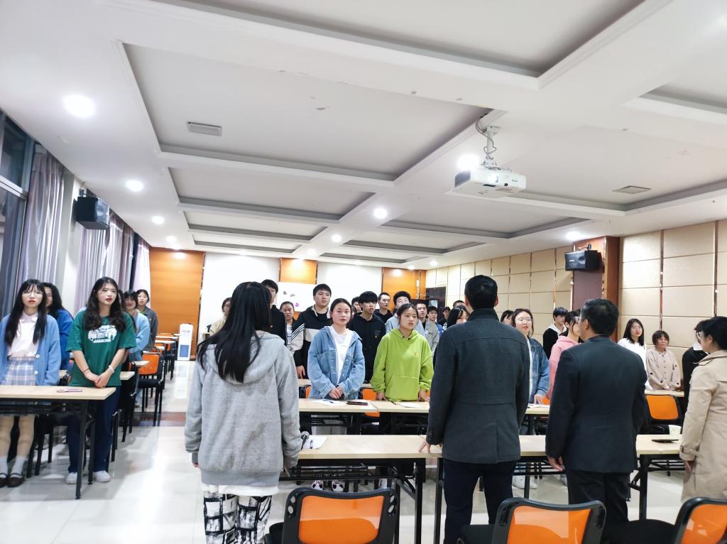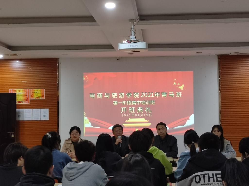 本站讯(电商与旅游学院 严包旦)岁月悠悠,先贤已逝;新时代的号角已经吹响!身为新时代青年,我们要切实增强思想和行动自觉。为进一步贯彻学习习近平总书记关于青年工作的重要思想,电商与旅游学院于4月19日晚7点在电商基地举行“青年马克思主义者”培训班开班仪式。党总支书记谭育林、党总支副书记陈小保、团总支书记余纷及全部青马班学员出席。由团总支副书记李紫琴主持主持本次开班仪式。
