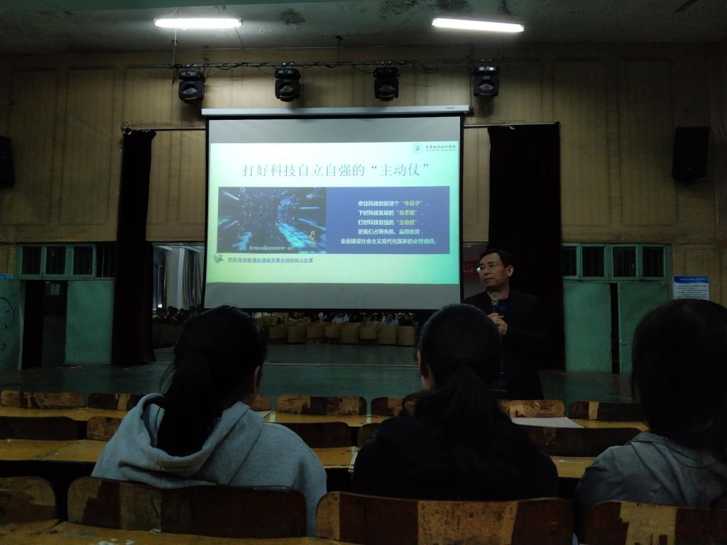 本站讯(艺术与设计学院 熊学舟)为更好学习十九大以来习近平新时代中国特色社会主义思想,进一步加强高校学生思想政治教育,4月14日,4月22日艺术与设计学院院长高华兵,党总支书记罗平面向我院2019、2020级大专学生开展了“形势与政策”系列讲课。