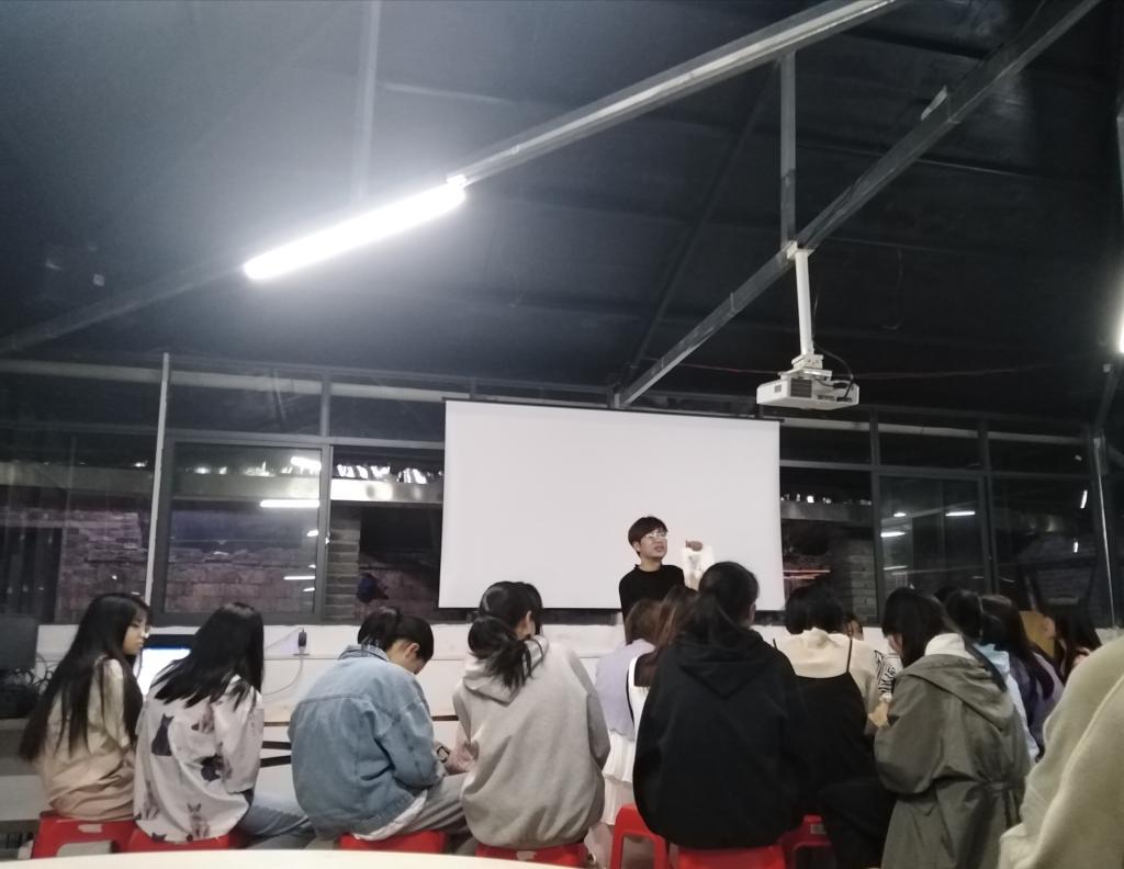 写生带队指导老师郭晶,利用晚上时间对学生白天风景写生习作进行逐一点评与指导。