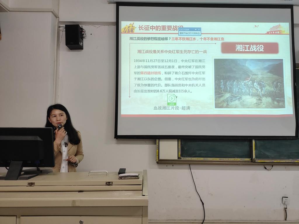 讲座伊始,郑立波老师向同学们抛出一个问题,长征是什么时候开始什么时候结束的?同学们踊跃发言,随后郑立波老师用PPT展示长征的时间、路程及其艰苦程度。本次讲座分为三大板块,一是长征精神永不过时,指出无论在什么时代都需要像红军战士那样吃苦耐劳踏实肯干的长征精神;二是长征中的重要战役,借助PPT和视频向我们讲述了一个悲壮沉痛的时期,在艰苦卓绝的环境中作战存活,在吃不饱穿不暖的条件下爬雪山过草地。第三个板块是长征精神的内涵及其意义,郑立波老师呼吁同学们要以红军的长征中展现的精神为榜样,在生活中学习中要勤学苦练做好长征精神传承人。