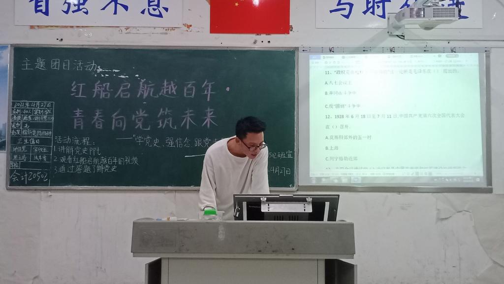 本站讯(财会金融学院 潘骁哲 学生记者 黄牙秀)为进一步教育引导我院团员青年深入学习贯彻习近平总书记在党史学习教育动员大会上的重要讲话精神,弘扬五四精神,培养青年学子的责任感、荣誉感和使命感,赓续红色基因,厚植爱国情怀。4月27日晚财会金融学院所有在校班级于第一教学楼开展了主题为“红船精神越百年,青春向党筑未来”的团日活动。