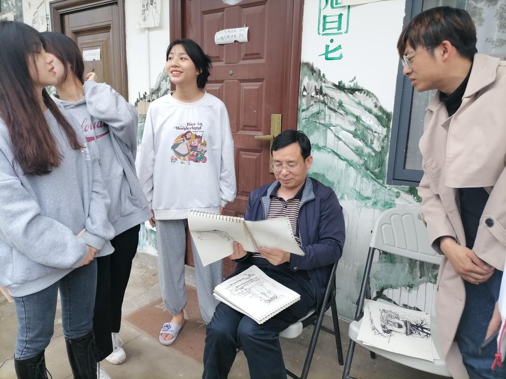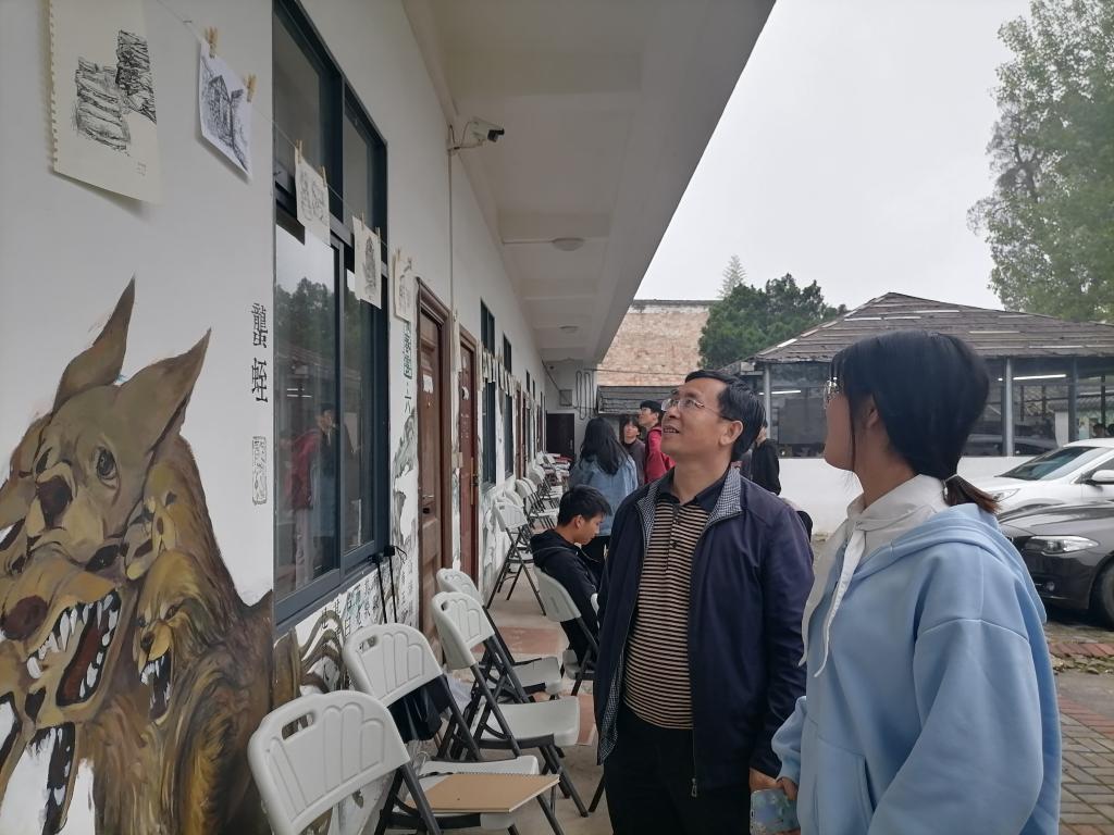 写生期间,艺术与设计学院院长高华兵、学工科科长郑立波、班主任谢巍来到写生基地,看望慰问写生的师生。