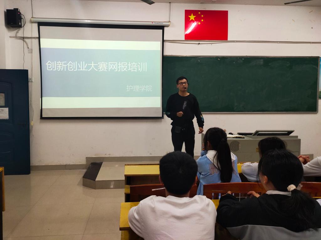 本站讯(护理学院 李辉员 学生记者 刘怡佳)为全面贯彻落实高等学校创新创业教育精神,积极配合学校完成第七届“互联网+”大学生创新创业大赛的报名工作,护理学院于5月7日晚上七点半,在南校区四教楼410教室开展“互联网+”大学生创新创业大赛网报培训,由护理学院实习就业科科长李辉员主持,来自各个班级的代表共计100余名同学参与了本次培训。