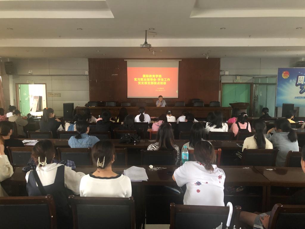 本站讯(国际教育学院 杜欣宇)为了帮助同学们能够顺利完成实习任务,并实现高质量就业,5月17日下午,国际教育学院学生工作党支部在一教楼九楼报告厅开展了支部挂点班级活动,为同学们提供实习就业指导。相关班主任辅导员老师及2022届毕业生参加了本次会议。会议由学生工作党支部成员杜欣宇同志主持。