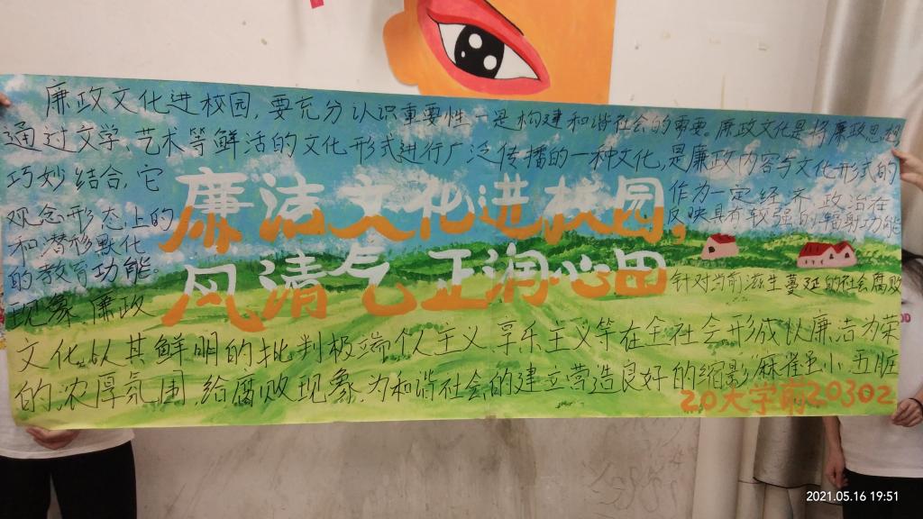 本站讯(师范学院 徐政)为传播风清气正的廉洁之风,加强我院清廉文化建设,师范学院于5月16日晚在各班教室开展廉洁文化主题黑板报评比活动。