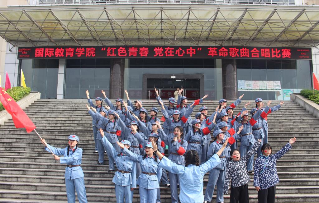 本站讯(国际教育学院 朱媛 学生记者 袁子瑜)为弘扬爱国精神,重温红色经典,增强班级凝聚力,丰富校园文化生活,国际教育学院于5月25日下午在第一教学楼阶梯处举行了“红色青春,党在心中”革命歌曲合唱比赛。国际教育学院团总支书记朱媛、辅导员金岩、专职教师张源晴、创新创业学院干事纪仪芳应邀担任了本次活动的评委。