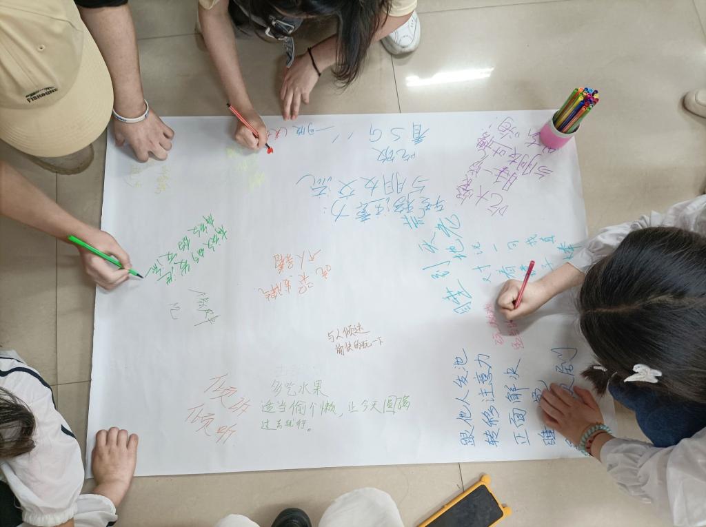 第一期主题为“相逢是首歌”。龚老师通过“幸福拍手”小游戏,打破成员之间的陌生感并建立了团体契约。接着龚老师让同学们对自己近期的情绪状态打分,引导并鼓励同学们说出自己的情绪体验,之后分小组进行“风雨同舟”活动,进一步加深彼此的连接。