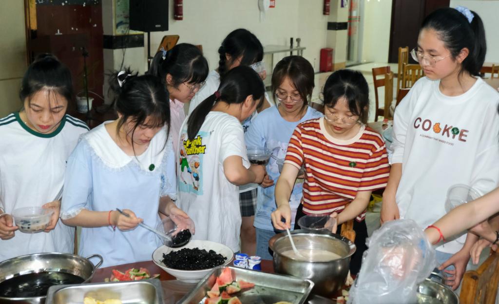 “信息传递”充分考验了团队协调默契能力;“疯狂猜歌曲”瞬间将活动气氛调动到高潮,随着音乐的转换,大家激烈角逐,你争我抢;趣味十足的“数字炸弹”游戏引起了台下的阵阵掌声与欢笑声。在娱乐的同时,大家也兴致昂扬地调制出了可口的奶茶。