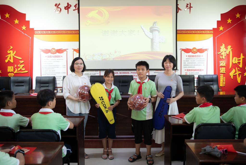 最后,党员们将精心挑选的文体用品送到同学们手中,希望同学们好好学习、好好锻炼,做社会主义的合格建设者和接班人。