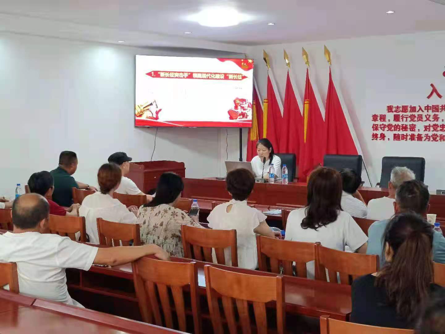 党课《团结起来振兴中华》由机关第八党支部宣传委员刘晓英同志主讲,党课从“新长征突击手”领跑现代化建设“新长征”、“五讲四美三热爱”引领时代新风、“从我做起,从现在做起”、“学习张海迪”与争做“四有新人”、“希望工程”点燃“我要上学”的希望、“送人玫瑰,手留余香”的青年志愿者行动、“青年文明号”注入职业文明新气象、“中国青年创业行动”等几方面展开讲述。