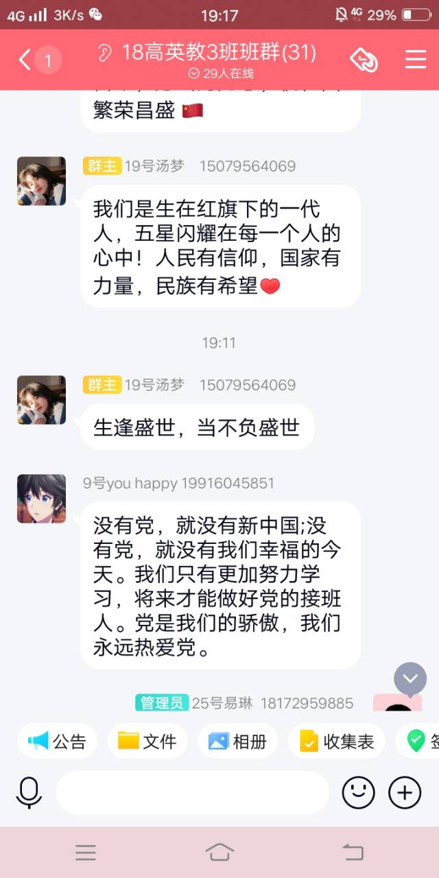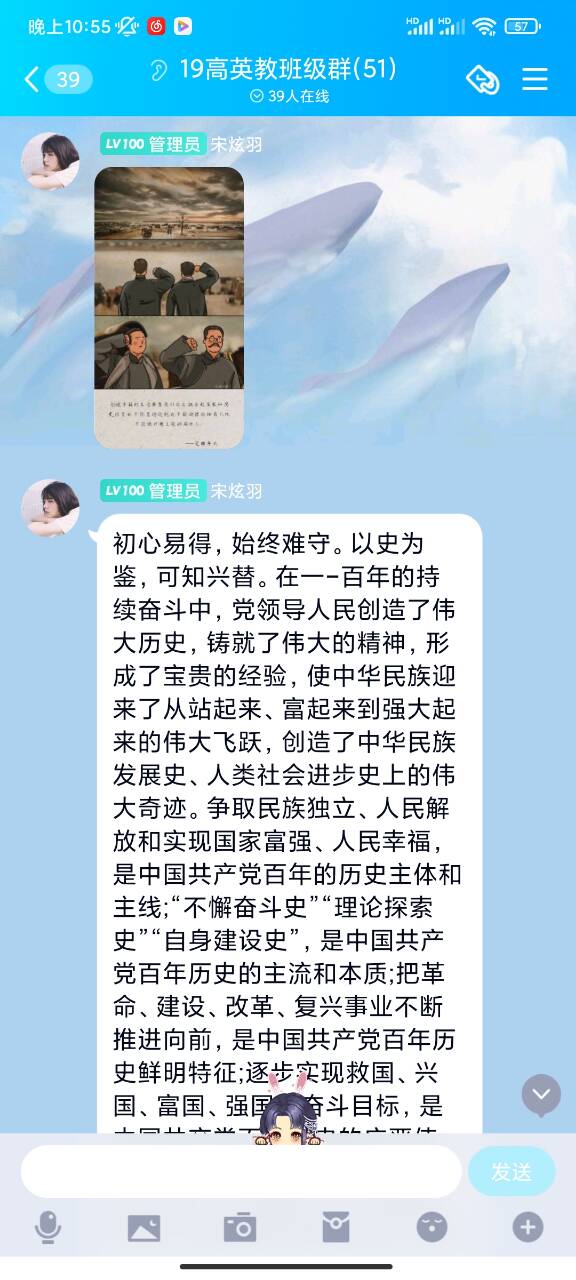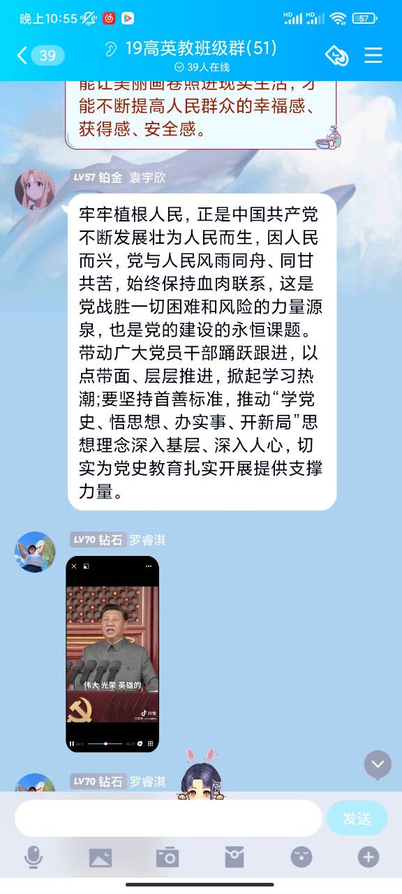 本站讯 (国际教育学院 朱媛 学生记者 周娇阳)国际教育学院于7月5日晚利用QQ群举行了关于“学习习近平在庆祝中国共产党成立100周年大会上的讲话和刘奇书记在江西省庆祝中国共产党成立100周年大会上的讲话”线上主题团日活动。
