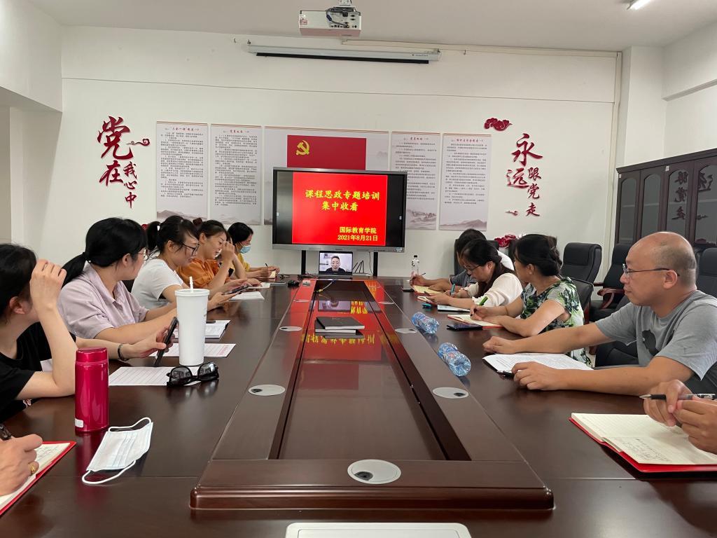 本站讯(国际教育学院 颜灵仪)为了进一步提升我院教师“课程思政”教育教学能力,8月21日至22日,我院组织全体教师参加江西省高校教师“课程思政”建设能力专题培训。培训采取线上与线下两种方式。8月21日及22日下午国际教育学院组织各教研室主任以及全体党员教师在科技综合楼401室参加集中学习。