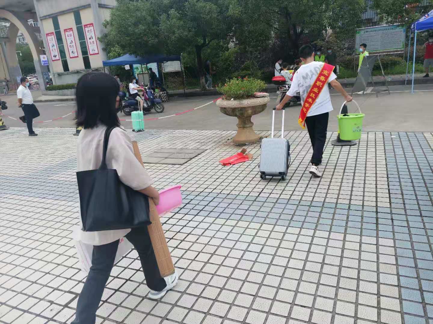 烈日炎炎,志愿者们始终坚守岗位、格尽职守,穿梭在青春广场,为家长和同学们做好校园引导、秩序维护、行李运送、临时休息等服务。他们忙碌的身影,是一面面飘扬的旗帜,彰显了青春奋发的力量。