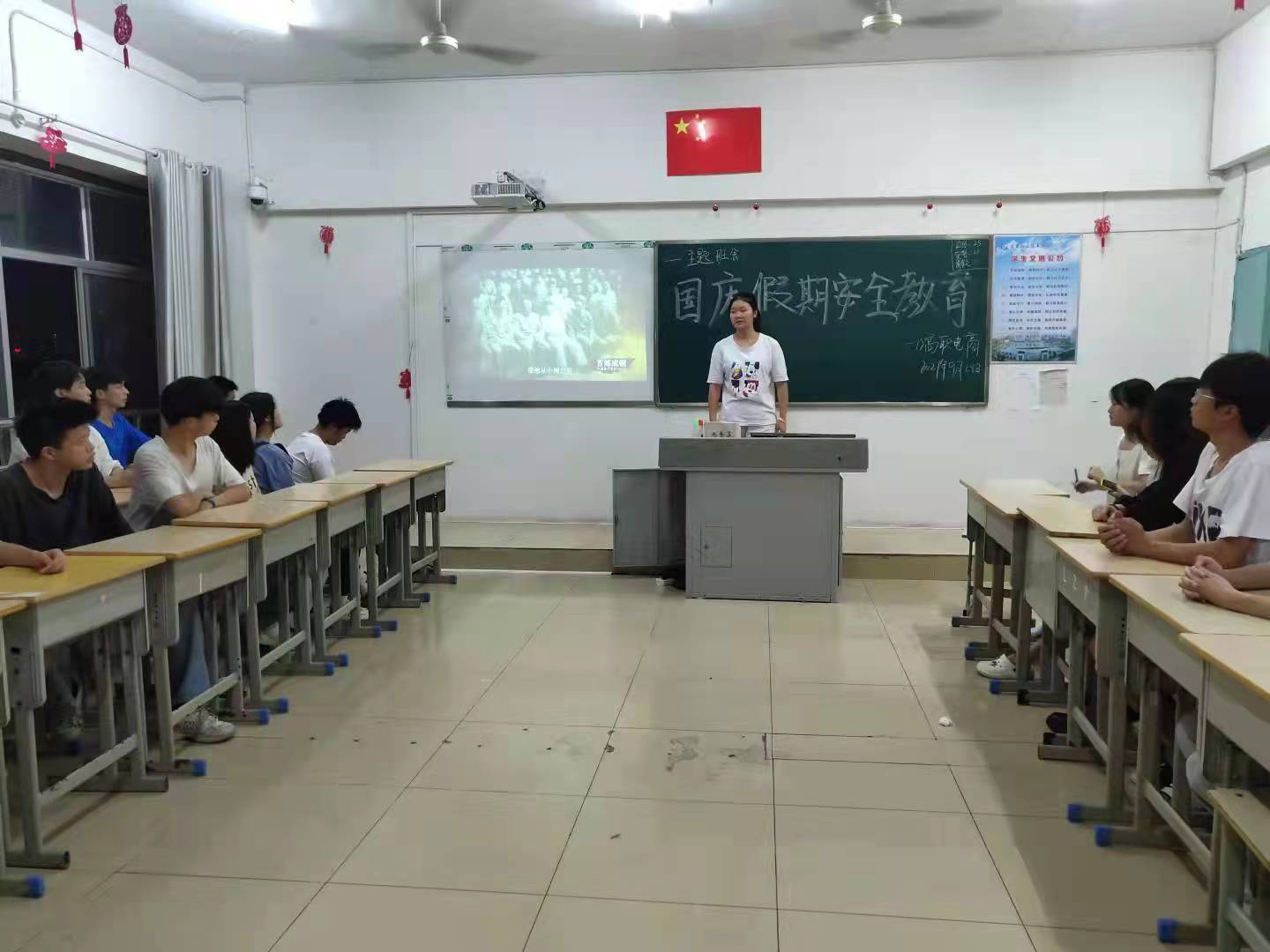 本站讯(电商与旅游学院 马思源 学生记者 严包旦)国庆节来临之际,为做好国庆期间疫情防控和安全教育管理工作,提高同学们的假期安全意识。2021年9月28日晚,电商与旅游学院组织所有班级召开国庆节假期安全教育主题班会。