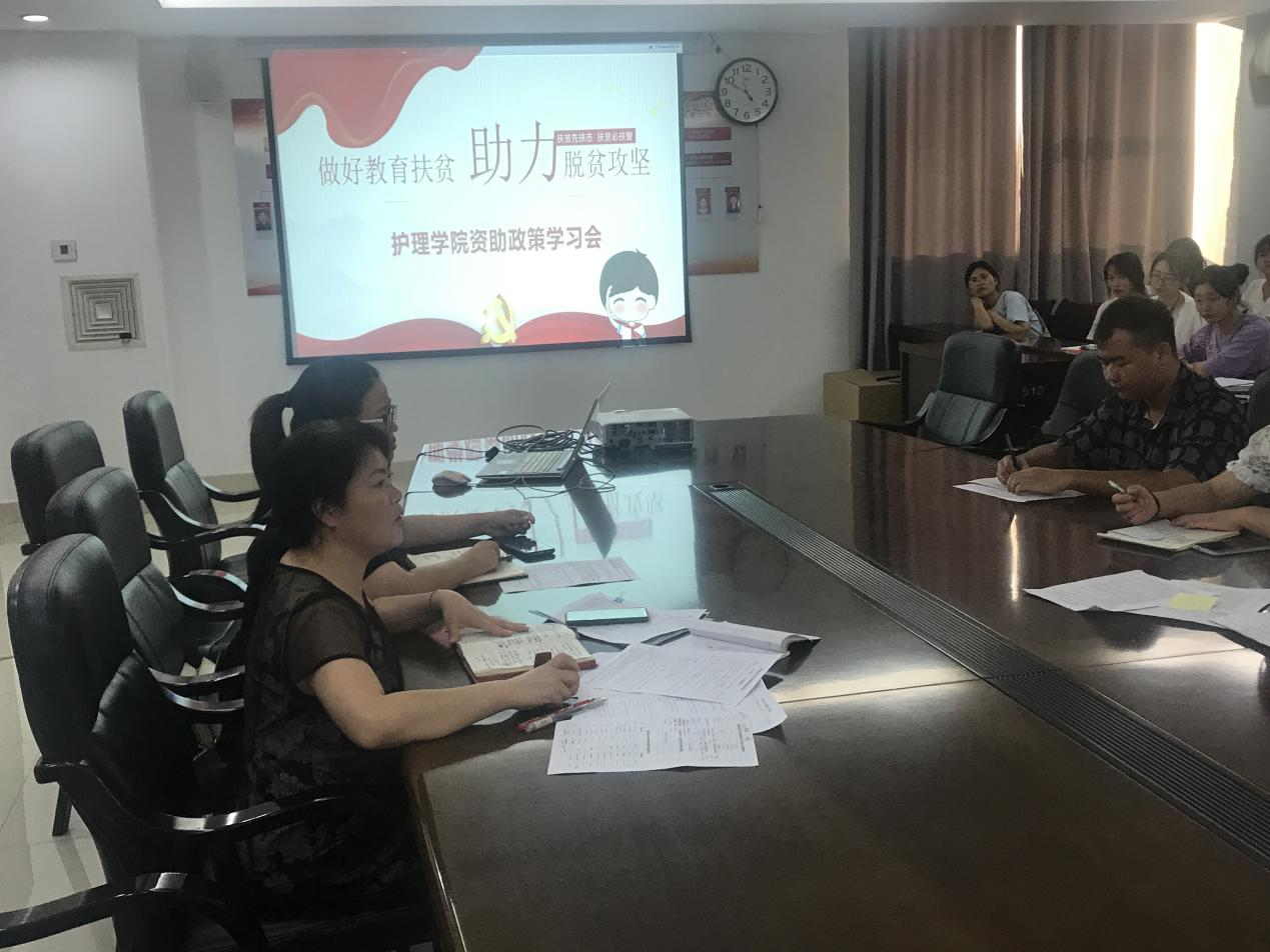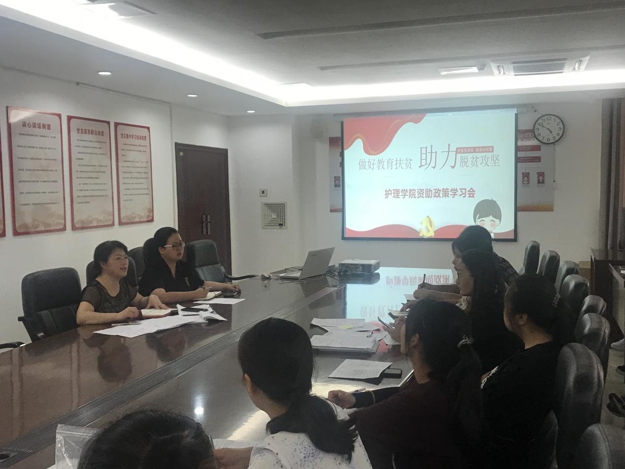 本站讯(护理学院 张蔺珊 赖雍容)为认真做好资助政策宣传工作,关心关爱我院家庭经济困难学生,积极开展励志、诚信和感恩教育,充分发挥资助育人作用。9月28日,护理学院在科技综合楼413会议室开展了资助政策学习宣传活动,活动由党总支书记胡蓉主持,护理学院全体学工方面的老师和全体班主任参加会议。