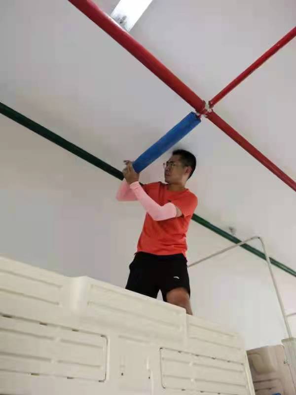 当了解到学生宿舍安装的消防管道可能会导致高一点的同学爬上床时撞到头,大家就群策群力,立即想办法解决。10月5日,全体党员同志、部分辅导员自发地来到新校区宿舍楼,用塑料泡沫管包扎消防管道,确保学生有个安全舒适的居住环境。谢海英书记强调:“虽然学生撞到头的可能性很小,但是只要有一位同学撞到,那就是我们的服务工作没做好。我们要想在前面、做在前面,这才是爱生如子的真正体现。”
