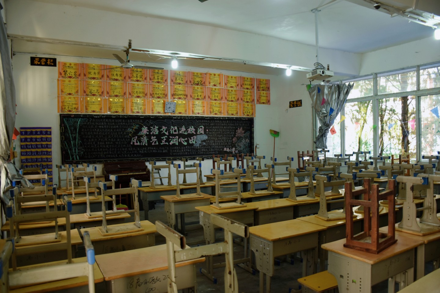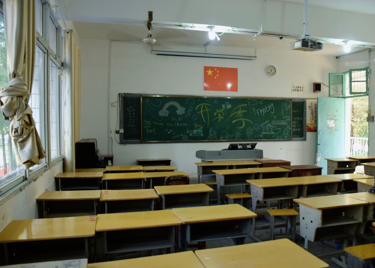 为了给初来乍到的学弟学妹们一个干净整洁的学习环境,19级和20级艺术教育的学长学姐们,纷纷以身作则,主动整理并清扫新生教室,用热情来表示对新同学们的欢迎。志愿者们分工协作,相互配合,一个个勤劳的身影,用扫把和抹布将宽敞明亮的教室变得焕然一新,摆放整齐的桌子,为即将到来的新生们营造出舒适的学习氛围和清洁的生活环境。教室的黑板上也布满热情迎接他们的欢迎语,迎接和期盼的气氛溢满了整个教室。