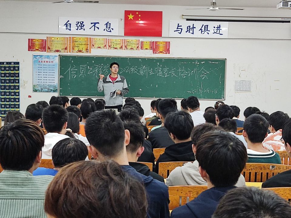 本站讯(信息工程学院 刘嘉妮 学生记者 江永锋 洪艳 )新学期伊始,为了提高新生的宿舍安全防范意识。2021年10月14日晚上信息工程学院于第三教学楼四楼402教室开展新生寝室长培训会议。