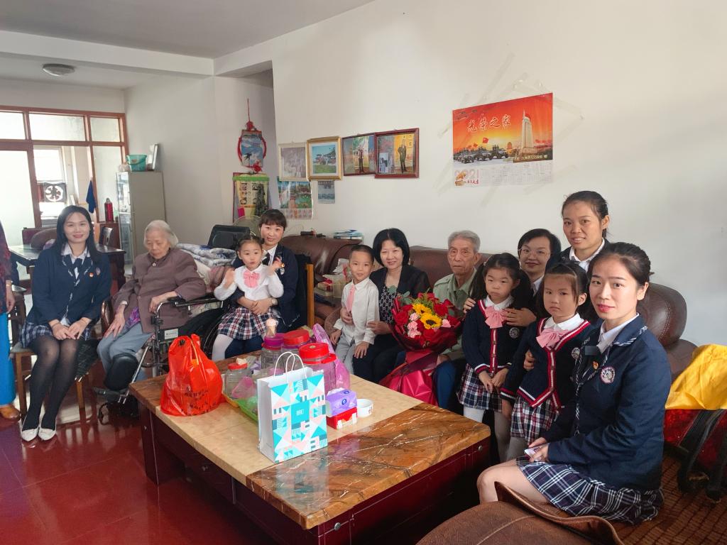 党支部一行来到抗美援朝老战士曾力堂老爷爷家中,看望曾老及其爱人,关切地询问曾老目前健康状况,陪曾老聊天谈心,还为曾老送上慰问物品和节日祝福,幼儿代表还将自己亲手制作的节日礼物,送给爷爷奶奶并为爷爷奶奶表演了一首简短的儿歌祝福她们身体健康,重阳节快乐!