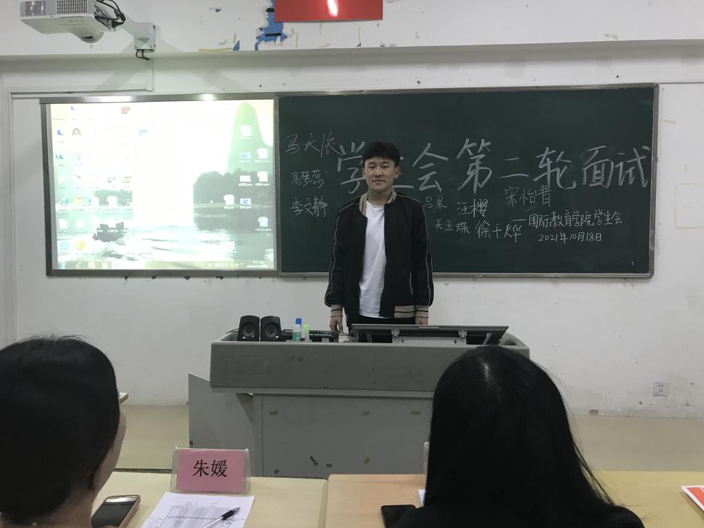 10月12日晚院学生会、青志协和社团的主要负责人去到了各班教室进行了招新说明会,新生们都积极踊跃报名,在学长学姐的介绍下根据自身的爱好和需求申报不同的部门,并进行了第一次面试。10月18日晚在第一教学楼中601、602教室进行了第二轮面试,国际教育学院团总支书记朱媛、辅导员杨琨、辅导员金岩、院学生会执行主席陈仟孩、主席团成员张小龙和主席团成员丁芊艺担任了此次面试的面试官。