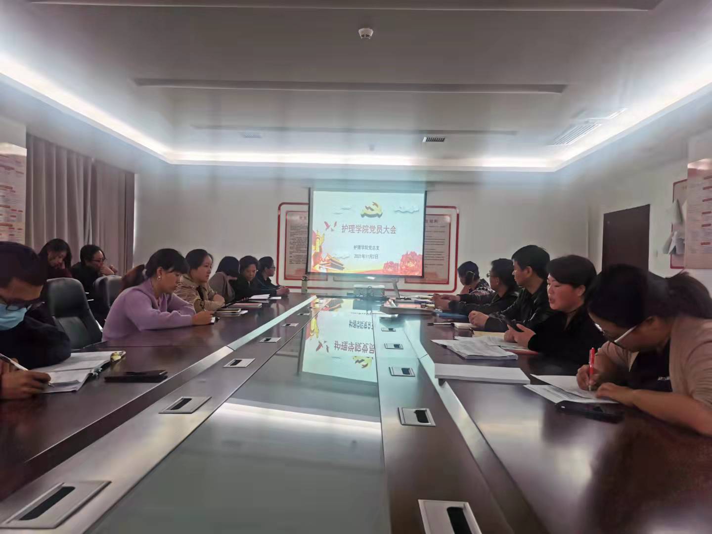 本站讯(护理学院 张蔺珊) 11月2日下午,护理学院党总支在科技综合楼815会议室组织召开了党员大会,会议由党总支书记胡蓉主持,全体党员参加。