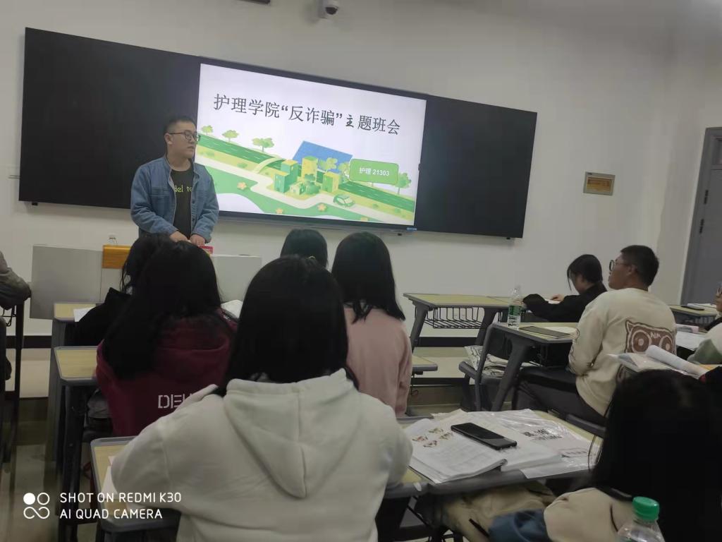 此次主题班会,进一步增强了我院学生对预防诈骗的防范意识和能力,提高了同学们的自我保护意识,起到了良好的警示教育作用。护理学院将持续高度重视平安校园建设,积极开展各类预防诈骗等安全教育,切实增强我院师生的安全防范意识,积极遏制各类诈骗事件的发生。