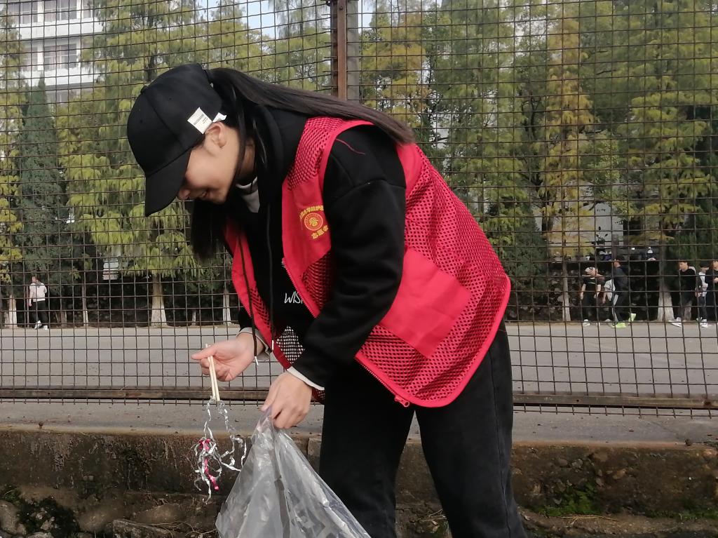 此次志愿活动的开展,为师生办了实事,还了校园清洁,发扬了青年志愿者无私奉献的精神,提高了同学们讲文明、爱卫生、保护环境的意识,助力了文明校园建设。(摄影戴嘉萍)