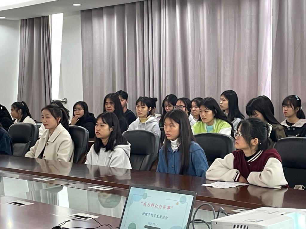 座谈会上,与会老师们首先向同学们说明了召开此次学生座谈会的目的,力求解决同学们在学习生活中遇到的实际困难,请同学们畅所欲言。同学们纷纷从日常学习和生活实际情况出发,积极发言,反馈学情,分别从教学运行、教学设备、实验室配置、自习室、教室寝室卫生环境、学生宿舍热水供应、食堂饭菜、校园环境和体育设施等方面提出了最关心的现实问题,并给予了相关意见和建议。