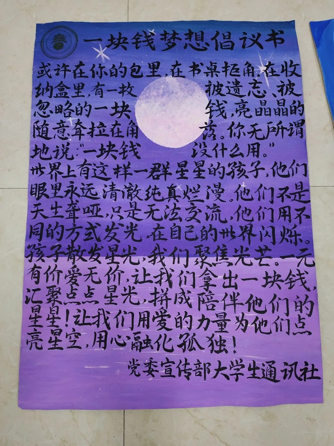 本站讯(大学生通讯社 饶乐颖)“如今,一块钱或许算不了什么,但是它却能为自闭症儿童送去一份温暖。众人拾柴火焰高,我们一定能把爱心越筑越高!”这便是“一块钱的梦想”活动的初心。