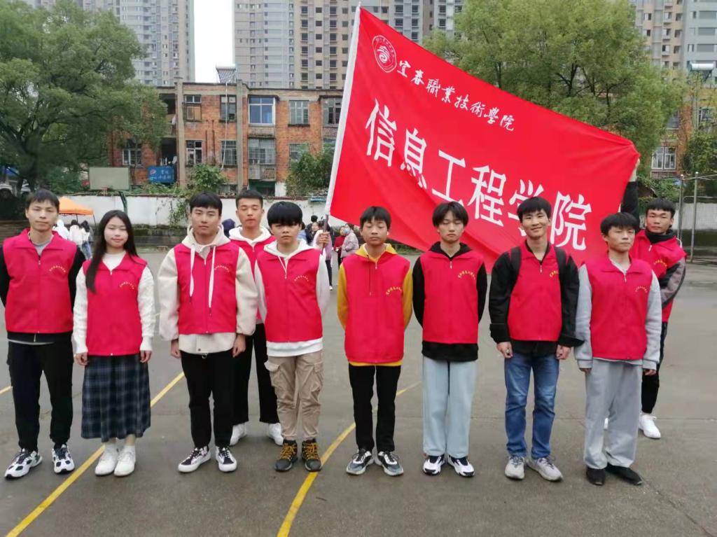 运动会期间,操场各处都洋溢着青春的气息,身穿红马甲的志愿者也成为人群中一道靓丽的风景线。信息工程学院的志愿者们早早就到活动现场布置志愿服务点,并贴心地为运动员们准备好饮用热水;为了给运动员提供更周到的后勤保障服务,志愿者们带领运动员前往检录点,并在终点为其加油助力。在运动赛场,志愿者们协助赛事组维持现场秩序,在场外,志愿者们进行操场卫生清洁,在细微处营造文明向上、积极阳光的校园风貌。