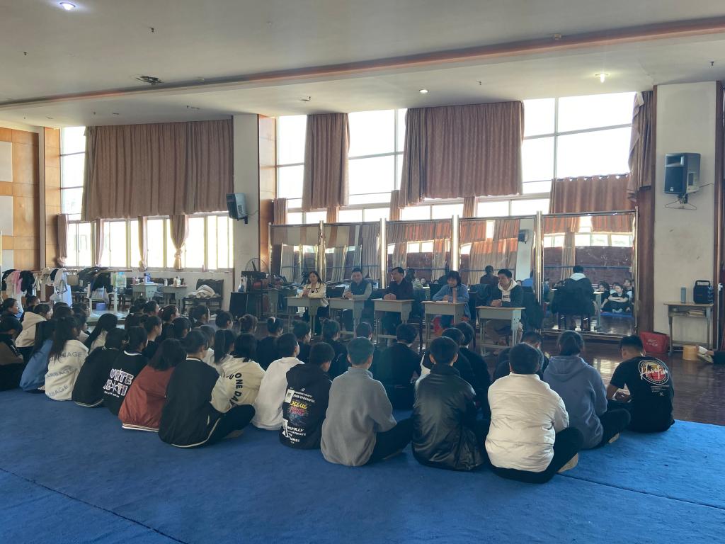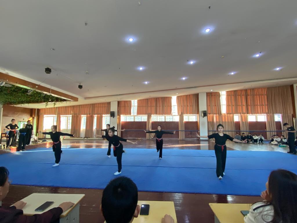 然后分别由新﹑老生班级分别汇报展示专业情况;17级采茶班全体同学展示腰腿功、毯子功的技术动作组合,男生武身训组合,女生表演采茶戏《求万岁》、《梁祝》唱段等,突显了同学们‘台上一分钟,台下十年功’的专业精神。紧接着21级采茶班的同学展示了拉丁舞﹑中国舞,空翻等节目片段,充分展现出大家对艺术的热爱与执着。专业展示结束后同学们纷纷发言:采茶班老生感叹时光飞逝,希望自己在有限时间里多练功多学本领多学专业知识,学艺之路唯有坚持方得始终;叮嘱学弟学妹们不能荒废时间,五年其实只是一瞬间。采茶班新生说道要向学长们学习他们的不怕苦不怕累的精神,羡慕他们的专业能力,希望自己能克服困难学好专业技能,五年以后自己也能发光发热。