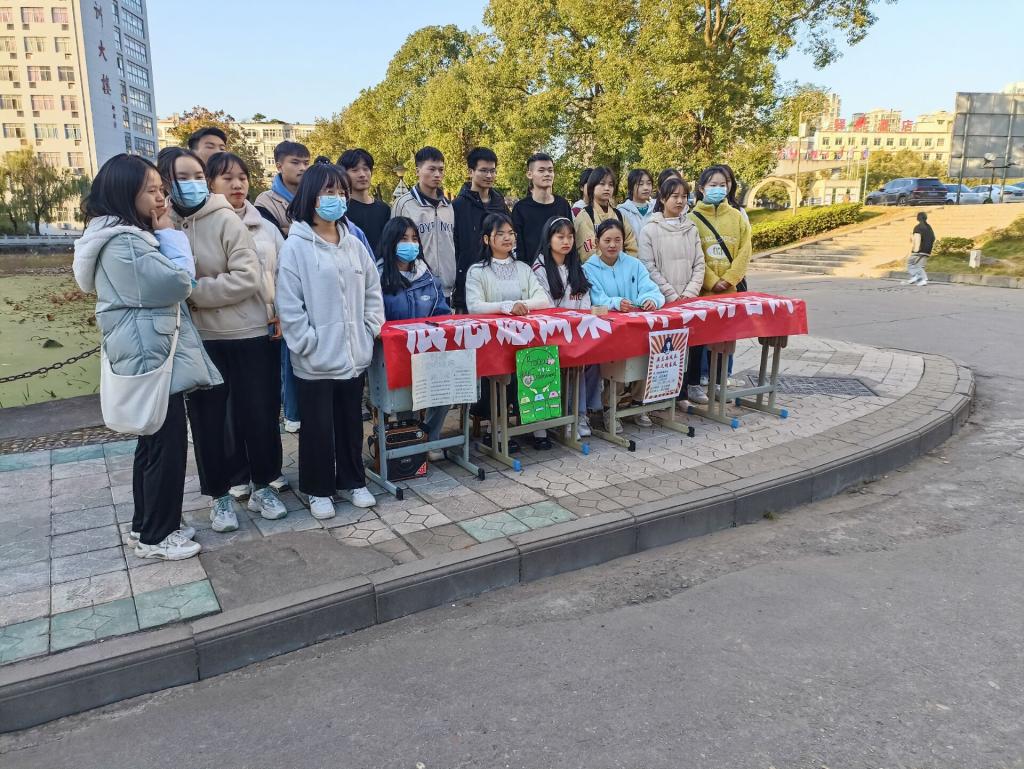 本站讯(国际教育学院 朱媛 学生记者 周雨彤)为推动学雷锋志愿服务活动深入持久在校园开展,国际教育学院英语教育18502班于12月1日下午在第一教学楼荷花池旁开展“展志愿风采·沐文明春风”为主题的示范性雷锋活动,本次活动诚邀校组织部工作人员前来观摩。