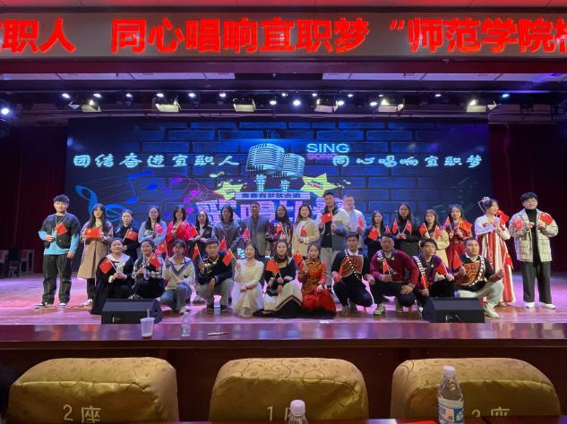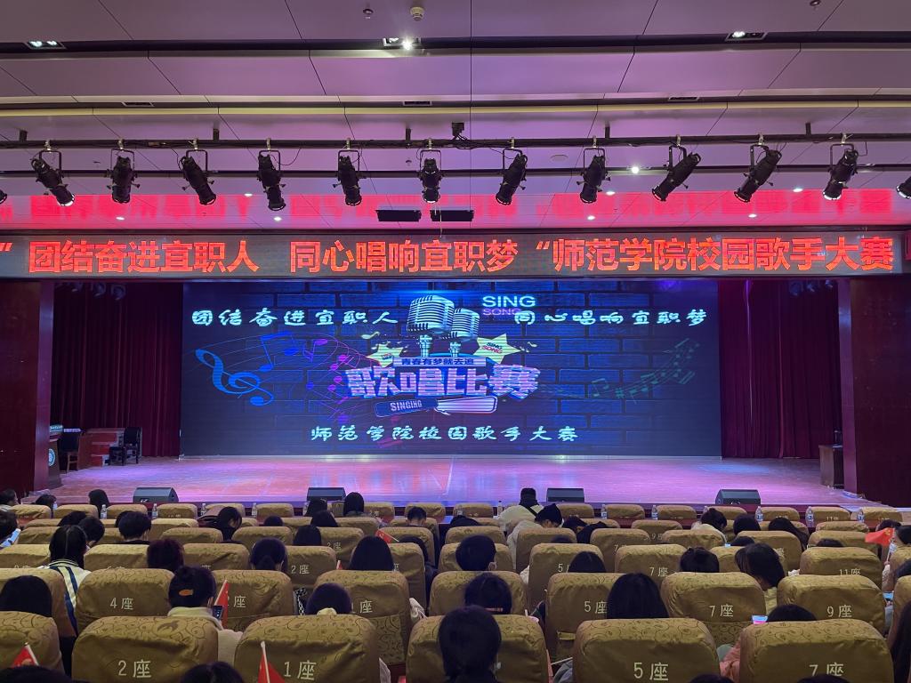 本站讯(师范学院 霍文杰 学生记者 彭舒颖)唱响青春旋律,传承百年党史。为繁荣校园文化生活,加强学生的精神文明建设,彰显英国上市公司365民族团结一家亲的校园氛围,促进英国上市公司365艺术教育发展,提升我院学子综合素质,师范学院于12月3日19:00-21:00在校本部科技综合楼二楼多功能报告厅举办“团结奋进宜职人·同心唱响宜职梦”师范学院校园歌手大赛。出席此次大赛的评委老师有师范学院党总支副书记饶丽老师,声乐专业副教授辛咏老师,音乐教研室主任胡忻忻老师,师范学院团总支书记杨文姝老师,师范学院辅导员霍文杰老师。