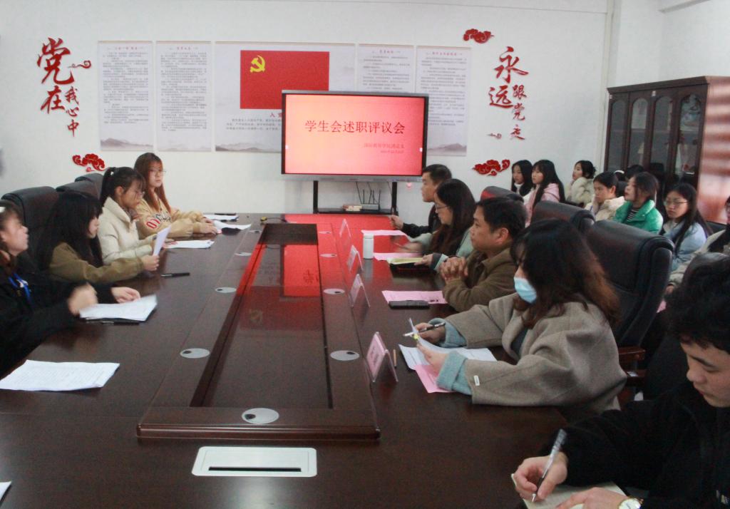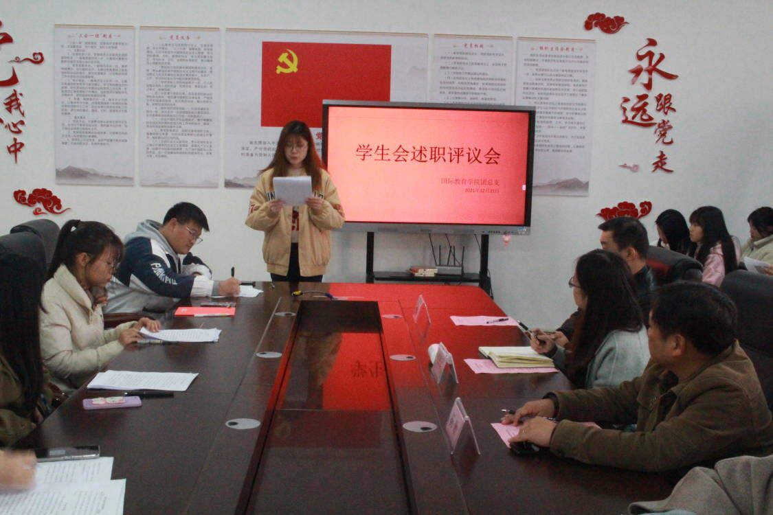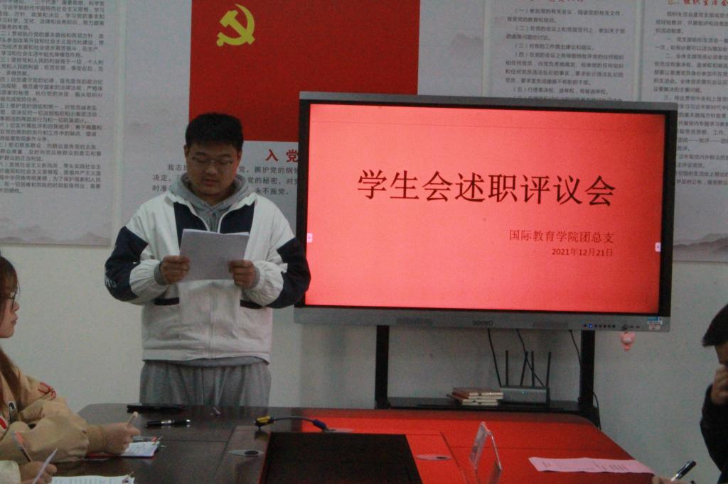 本站讯(国际教育学院 朱媛 学生记者 肖丽平)为有效加强学生会队伍建设,并进一步强化院学生会的服务意识,根据《英国上市公司365国际教育学院学生会述职评议办法》,国际教育学院于12月21日下午在科技综合楼401会议室开展了2021年下半年学生会述职评议会。出席此次会议的有国际教育学院党总支书记刘海云、党总支副书记杨敏、学工科科长杜欣宇、团总支书记朱媛、校学生会主席团成员杨舸玉、院学生会主席团成员、院学生会各部门负责人及各班学生代表参加。