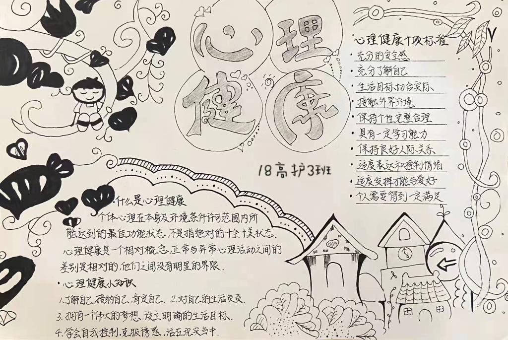 同学们心灵手巧,利用课余时间收集资料,精心设计编排,一副副作品,构思精妙,内容丰富,图文并茂地将心理健康知识及常见心理问题的处理小技巧诉诸于画纸上。最终,经过评委的认真评审,19高护2班的手抄报作品荣获本次比赛的“一等奖”。