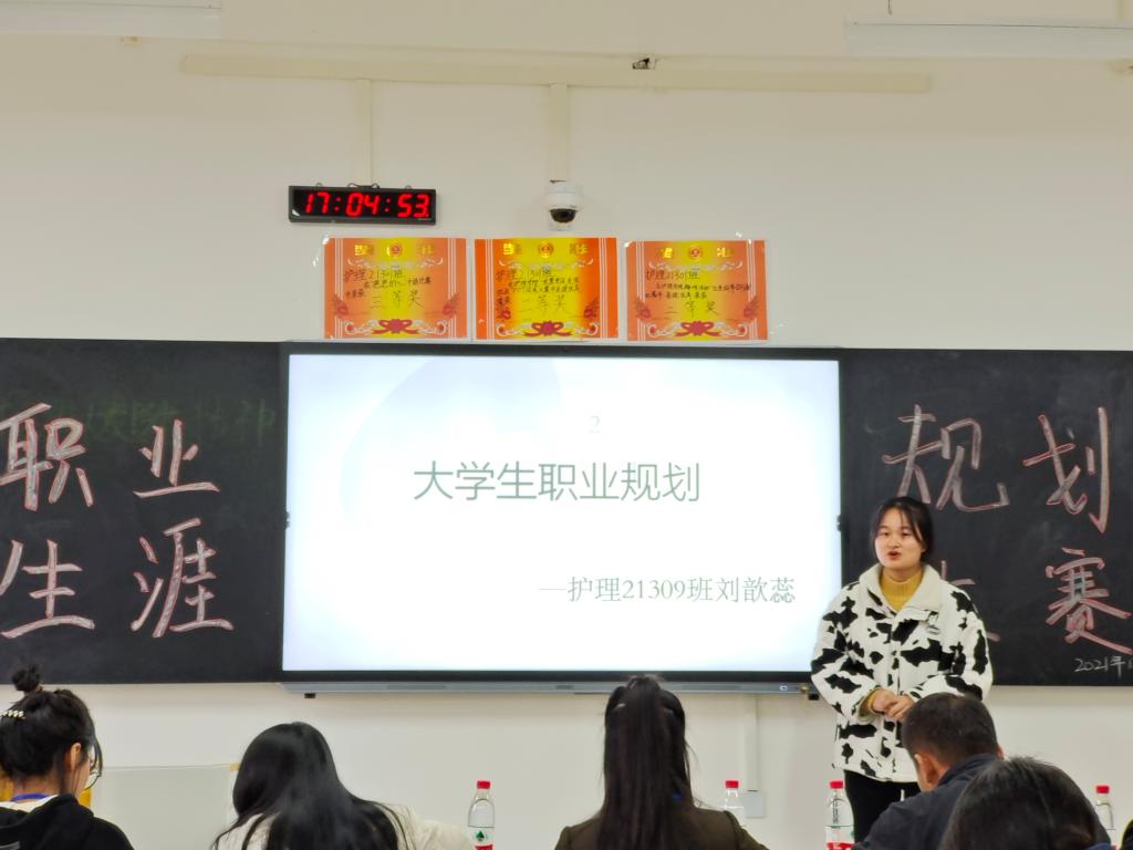 本站讯(护理学院 刘明健 学生记者 周宇 欧阳文涛)为进一步引导我院青年大学生树立正确的职业目标和人生目标,明确未来发展方向,提高就业竞争力和综合素质,护理学院于2021年12月21日在和济楼C103教室举办了“激扬青春,憧憬未来”新生职业生涯规划大赛。