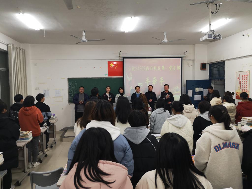 本站讯(机关第一党支部 刘杰)冬至,是中华民族重要的传统节气。为了弘扬中华文化,让同学们在严寒冬日感受到家的温暖,传递师生之情,12月21日晚,机关第一党支部与师范学院小教21302班开展“手拉手”活动见面会。