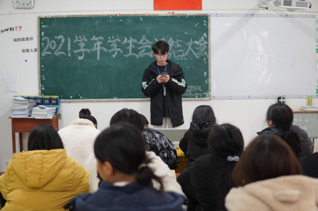 会议伊始,学生会执行主席陶敏对学生会2021年工作情况向大会作了述职报告;院团总支副书记冷欣对团总支工作向大会作了述职报告;主席团成员和各部门负责人对本年度所开展的工作向大会作了述职报告。随后,全体学生会工作人员对其进行了民主评议。最后,刘小三老师对学生会在本年度的工作表示认可与肯定,希望学生会在今后的工作中树立榜样,继续努力,形成合力,再创辉煌。