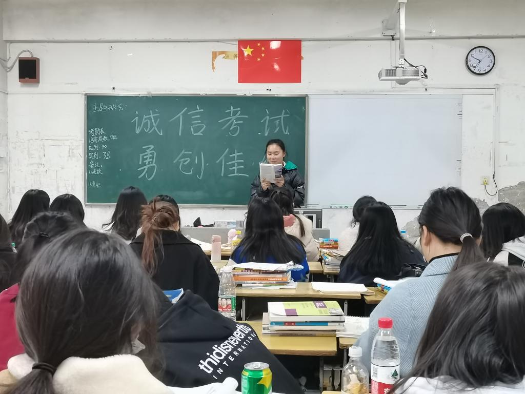 本站讯(国际教育学院 杜欣宇)为进一步贯彻落实学校考风考纪要求,深化诚信理念,培养诚信为本的道德观念,我院于1月4日在各班晚自习时间组织开展了“诚信考试,勇创佳绩”主题班会。