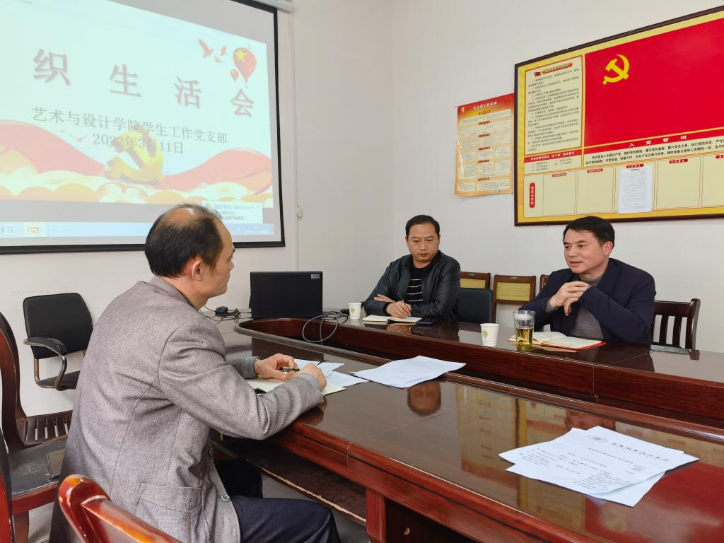 本站讯(艺术与设计学院 吴卿妍)为深入学习党的十九届六中全会精神,深化拓展党史学习教育成果,艺术与设计学院党总支根据学校党委下发的《关于召开2021年度基层党组织生活会和开展民主评议党员的通知》,于3月11日下午分别在二楼会议室、三楼会议室分支部开展2021年度组织生活会,并进行民主评议党员。会议由党总支下属各党支部书记主持,校纪委书记刘平涯出席了此次会议,与基层党员敞开心扉,坦诚交流,并给出指导意见。