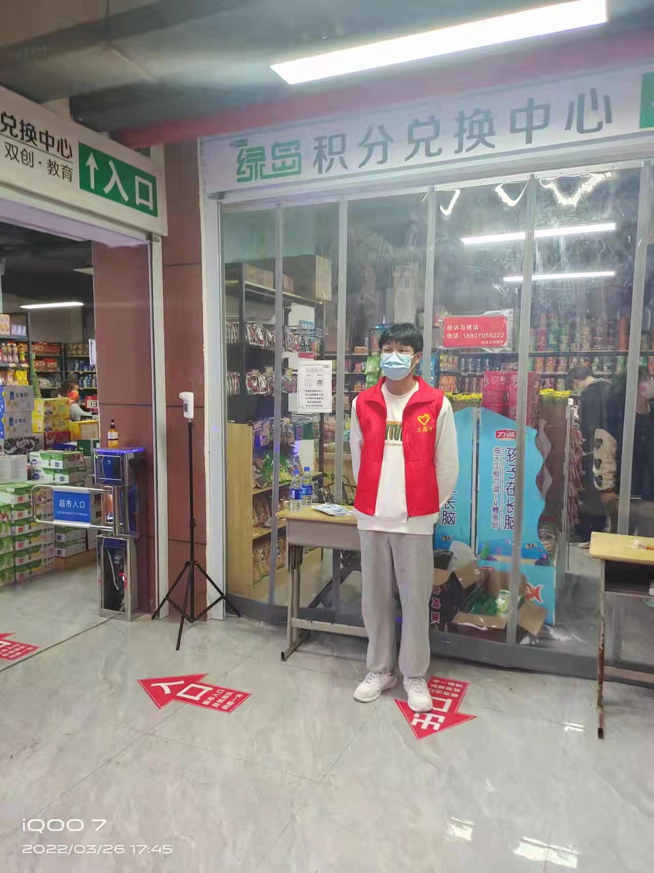 考虑到学生的上课时间,医学院每天安排四名学生分两个时间段进行值班,并为志愿者提供了口罩。值班期间,两名志愿者分别负责在绿岛超市的入口和出口,提醒进入超市的同学们遵守疫情防控要求,如佩戴口罩,排队付款时保持一米的安全距离,确保广大学生有序进出超市。