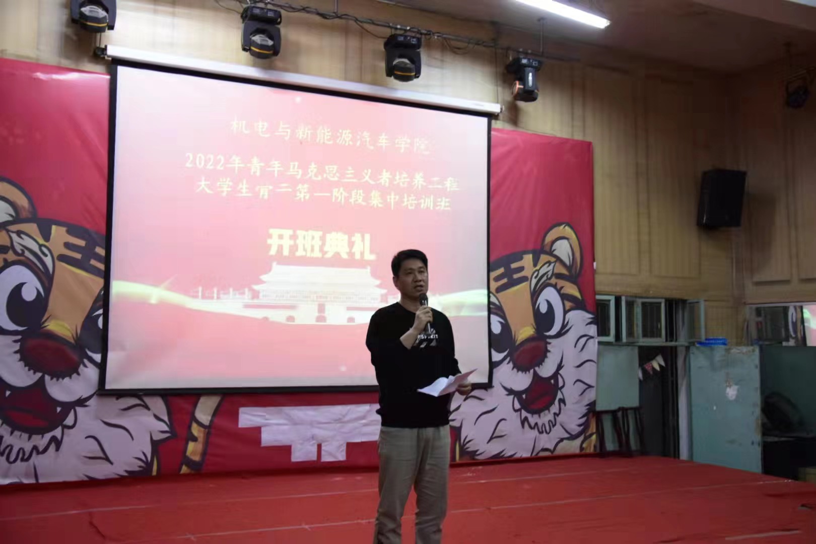 本站讯(机电与新能源汽车学院 周勤 王宇浩)4月7日下午,机电与新能源汽车学院2022年“青年马克思主义者培养工程培训班”(以下简称青马班)开班仪式在老科技综合楼一楼阶梯教室举行。出席本次开班仪式的领导及老师有机电与新能源汽车学院党总支书记赵琰、院党总支副书记宋秋奴、马克思主义学院曾骏副教授、机电与新能源汽车学院教师熊逸伟,开班典礼由我院团总支书记周勤主持,此次议程共六项。